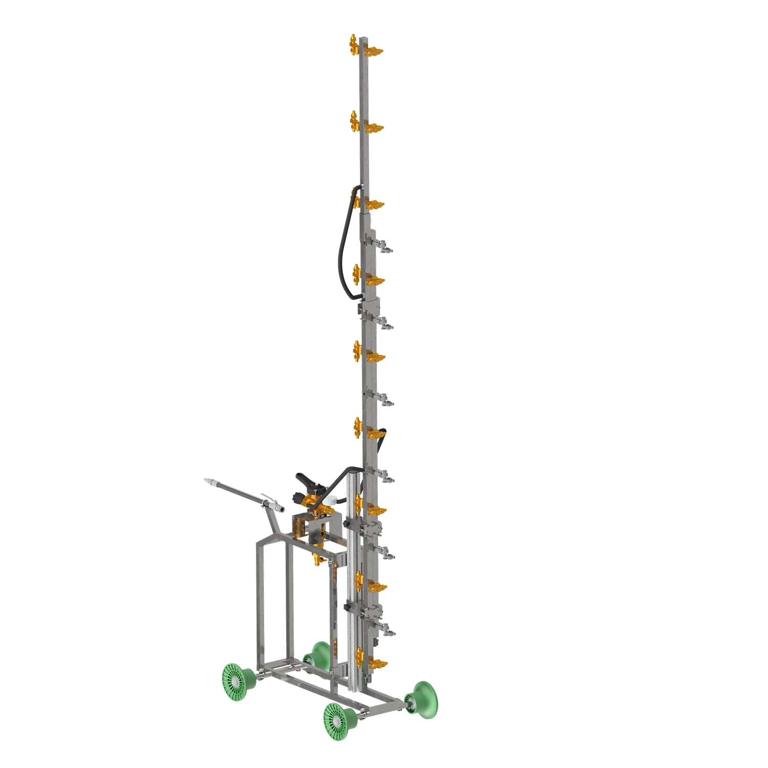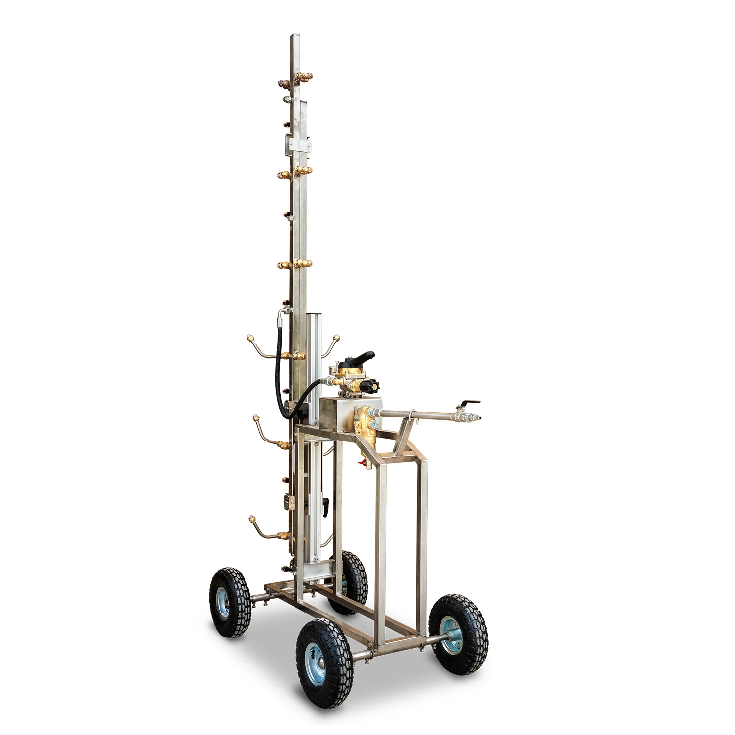Konstrukcja drzewka to w całości stal kwasoodporna. Wspornik masztów z regulacją wysokości pozwala na optymalne dopasowanie wysokości (zakresu) oprysku. Indywidulanie regulowane dysze można ustawiać w trzech pozycjach. Każda z nich może być otwierana i zamykana osobno.